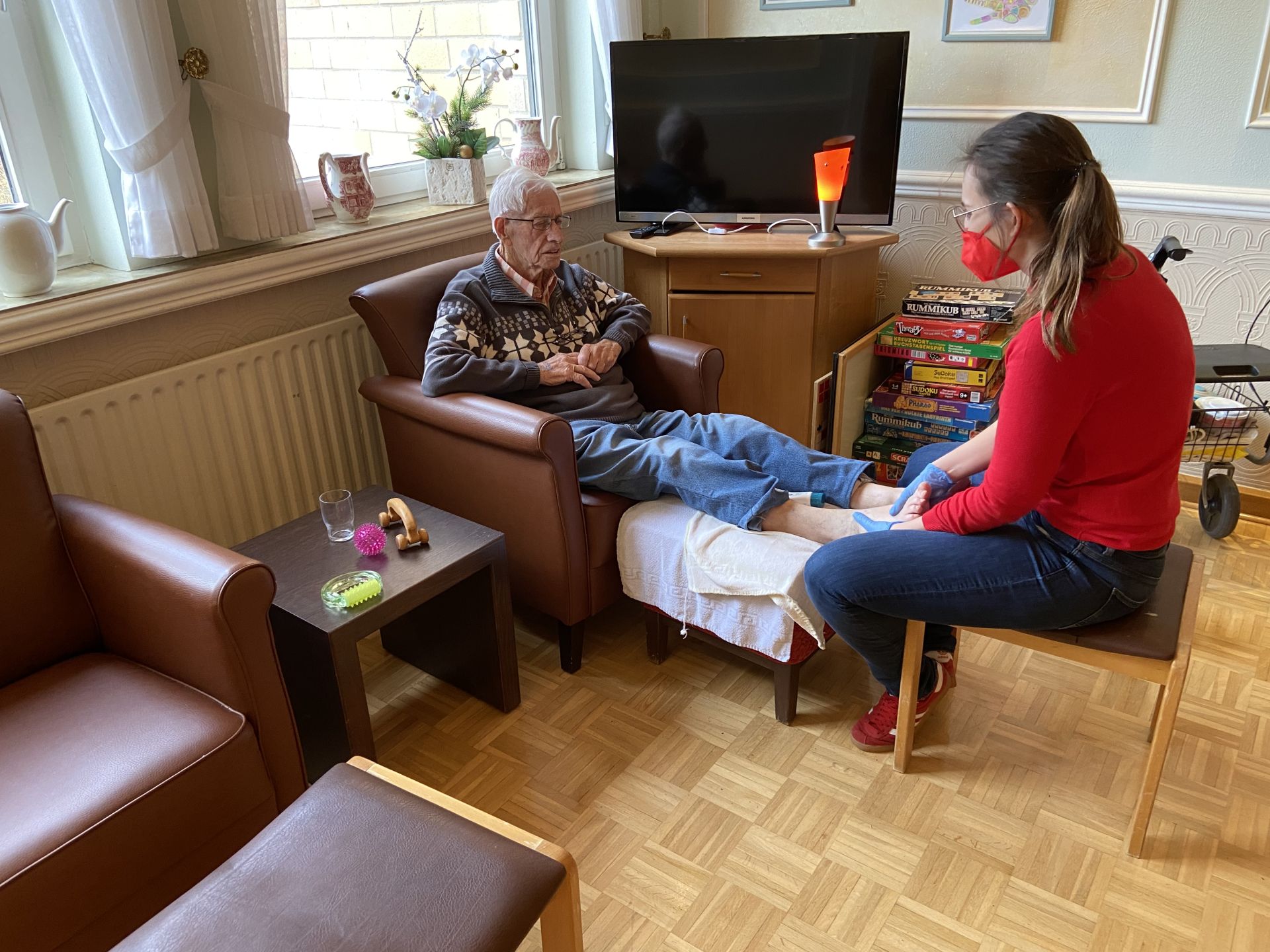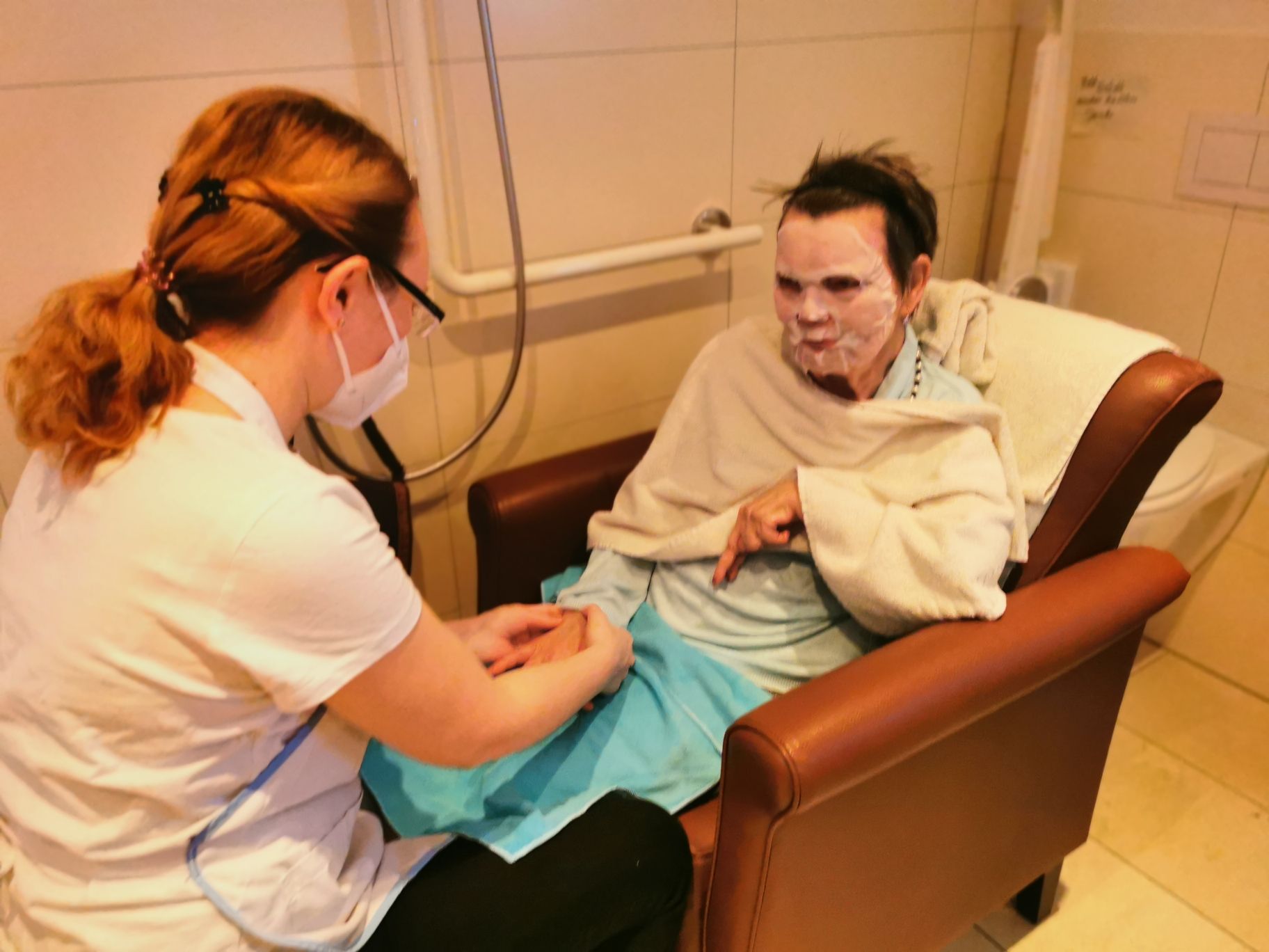 In unserem AWO Altenzentrum Weilerswist steht das Wohlbefinden an erster Stelle. Wie könnte man dies besser als mit Wellness und Spa steigern. Schon einige Male versuchten wir dies mit Balsam für den Körper. Dort wurden Bewohner*innen mit Peelings, Massagen und Fußbädern verwöhnt. Wir haben schon einige Fußbäder, einen Massagestuhl und Rezepte für pflegerische Masken oder Handpeelings. Balsam für den Körper hat einen positiven Effekt. Achtsamkeit. Die Bewohner*innen fühlten sich nach einer Behandlung deutlich wohler, dies wirkte sich auf die Umwelt aus. Es wurde sich über die Erfahrungen und das Befinden ausgetauscht. Somit hatte man eine schöne Atmosphäre. Was uns jedoch fehlt, um die Anwendung zu perfektionieren, sind bequeme Sitz-/Liegemöglichkeiten, z.Z. haben wir normale Sessel oder Stühle.
